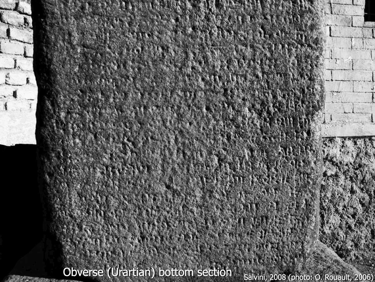 Salvini, M. 1984. “La bilingue urarteo-assira di Rusa I,” in Tra lo Zagros e l’Urmia. Ricerche storiche ed archeologiche nell’Azerbaigian iraniano, eds. P. E. Pecorella et al., Rome, pp. 79–95.